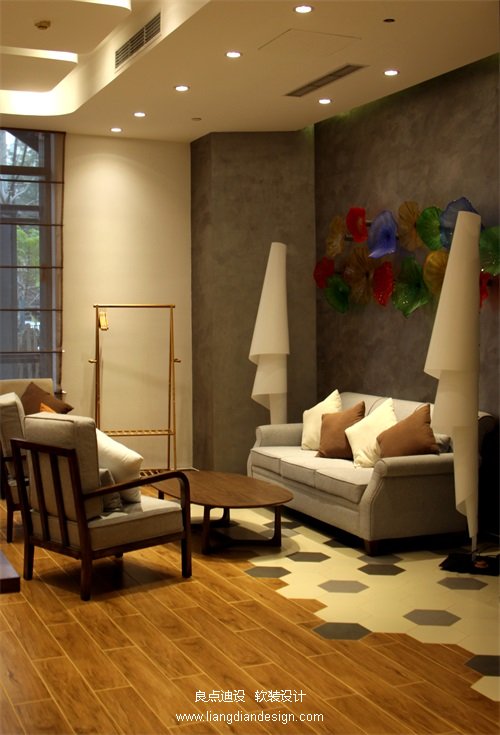 在軟裝設計中將山水的大自然靈性融入空間中,使其翔動一種源自自然的藝術氛圍,山水、竹子、流沙、雨花石、綠植及原木等這些元素運用其中,使整個空間一步一景,一份寧靜的北歐風情。裝飾材料主要有木材、石材、玻璃和鐵藝等,都無一例外地保留這些材質的原始質感。它所呈現出來的是非常接近自然的原生態的美感,沒有一點多余的裝飾,一切材質都袒露出原有的肌理和色澤。